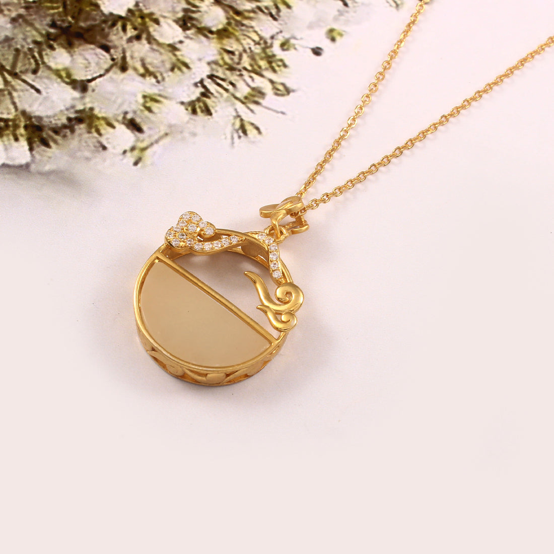 This Yellow Gold Hetian Jade 925 Sterling Silver piece beautifully blends traditional elegance with modern...