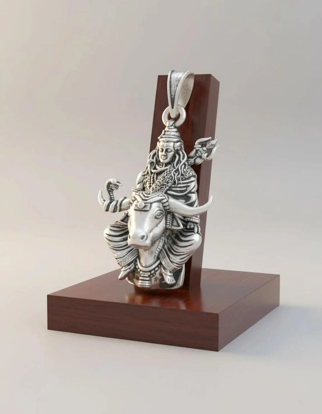 Lord Shiva with Nandi Pendant Necklace Oxidized 925 Sterling Silver