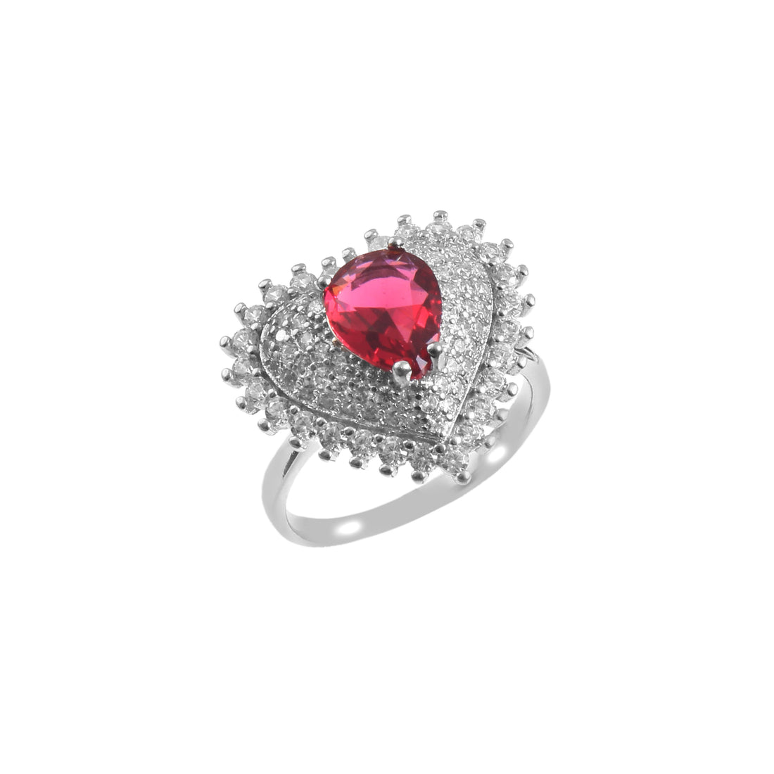 Silver Cubic Zircon White Red Pink Ring
