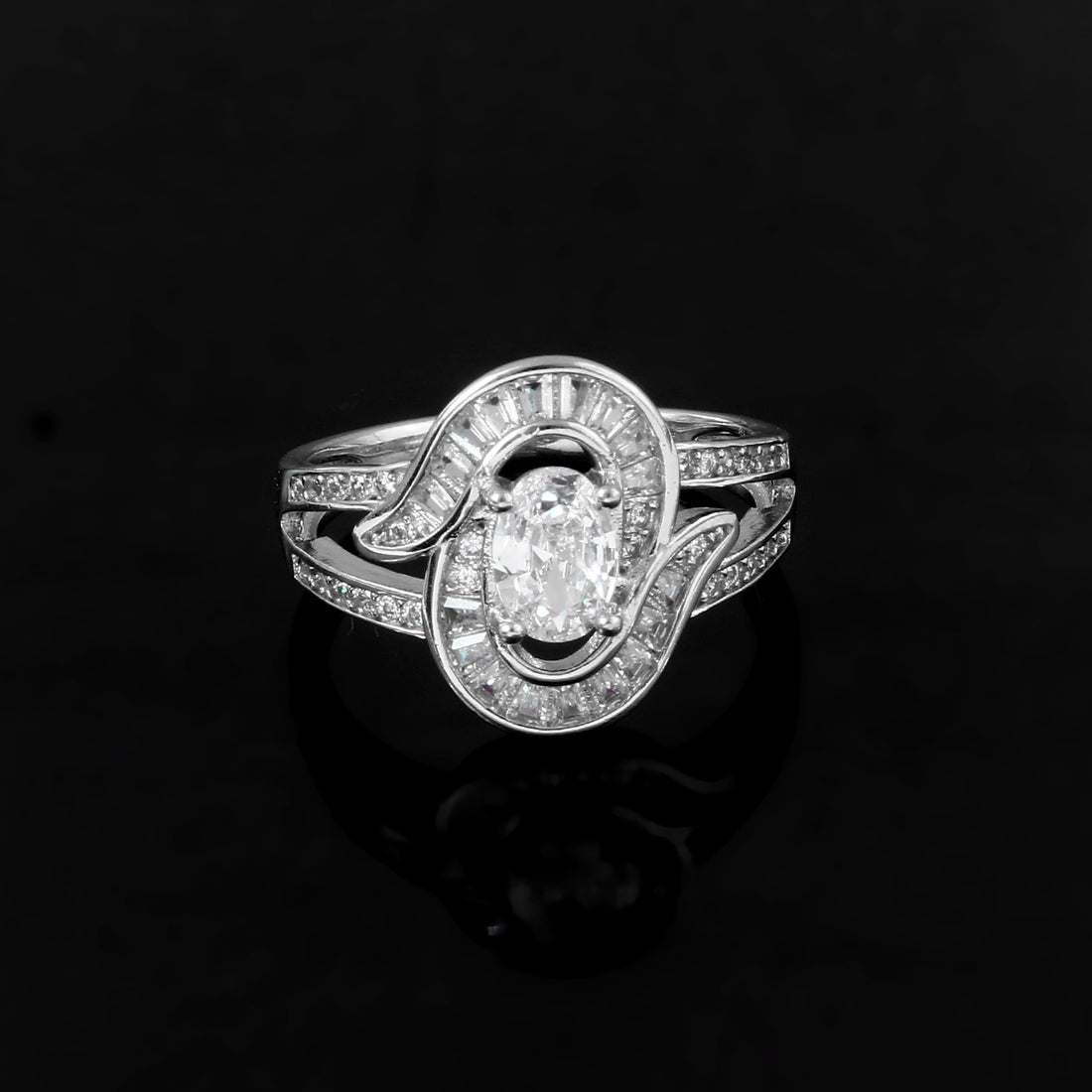 Rose Gold White CZ Statement Silver Ring